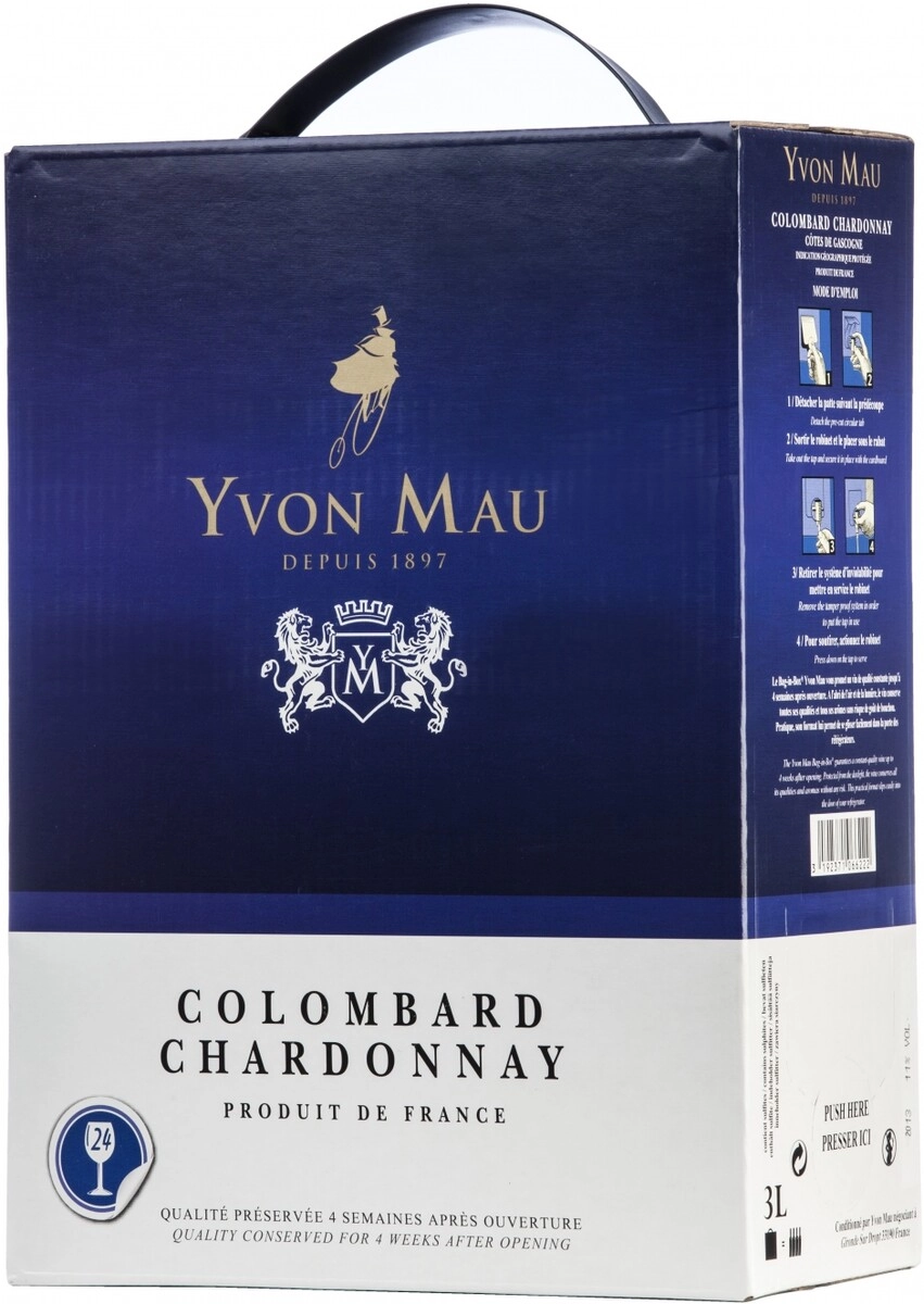 Вино Коломбар Шардоне, Ивон Мо, 3 л